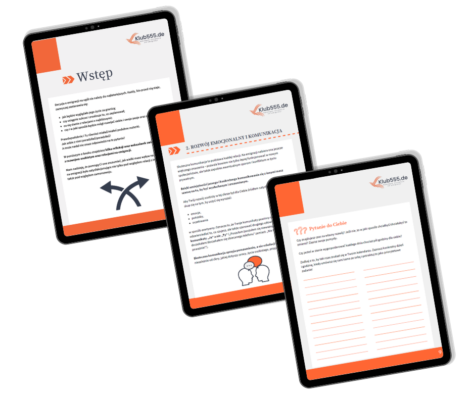 W e-bookach znajdziesz informacje ważne z punktu widzenia rozwoju osobistego na emigracji, a także ćwiczenia, które bez problemu wykonasz w domowym zaciszu.